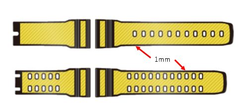 A 1 mm border is required from the edge of the watchband. (Area indicated by the red frames.)